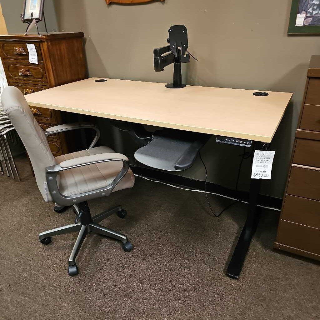 Up Lift Elec. Standing desk W/ Mounted monitor arm – 121 Consignment Furniture